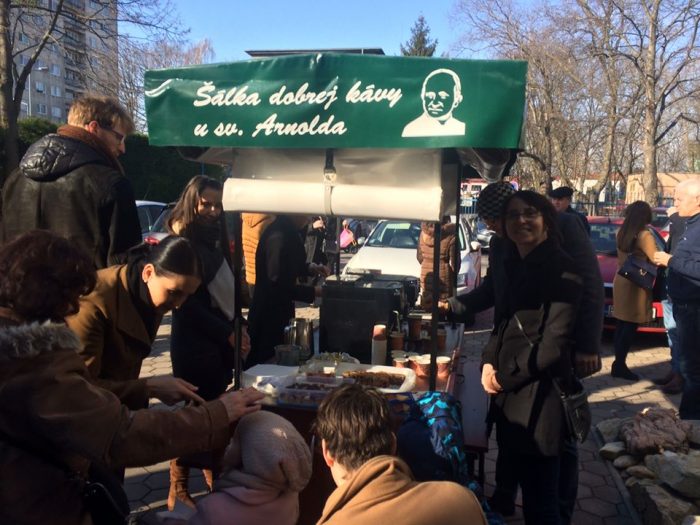 Každú nedeľu po sv. omšiach doobeda je pred kostolom pripravený stánok „Šálka dobrej kávy u sv. Arnolda“, aby ste mohli odchádzať od kostola povzbudený nielen Božím slovom, ale aj misijnou kávou.
