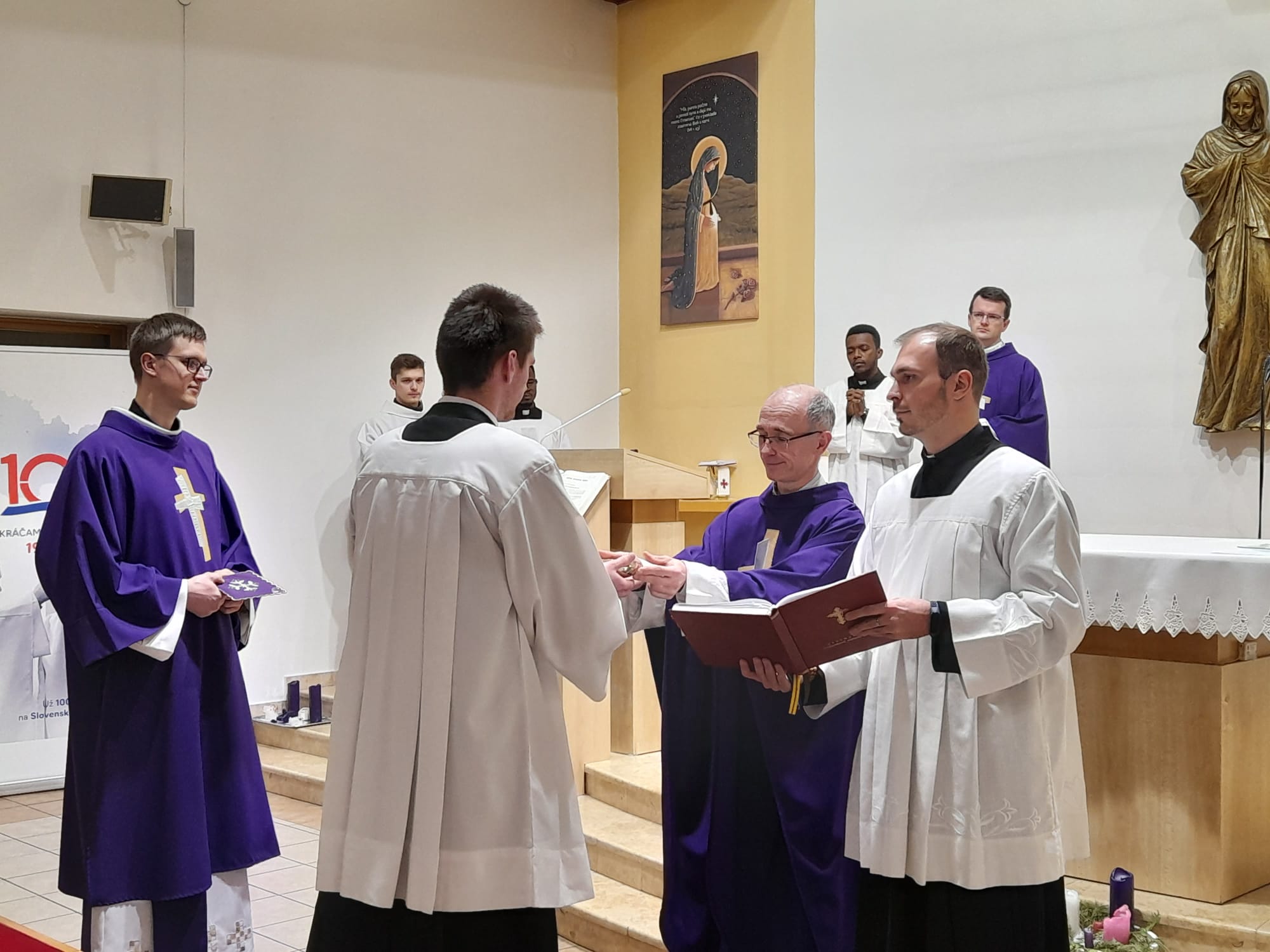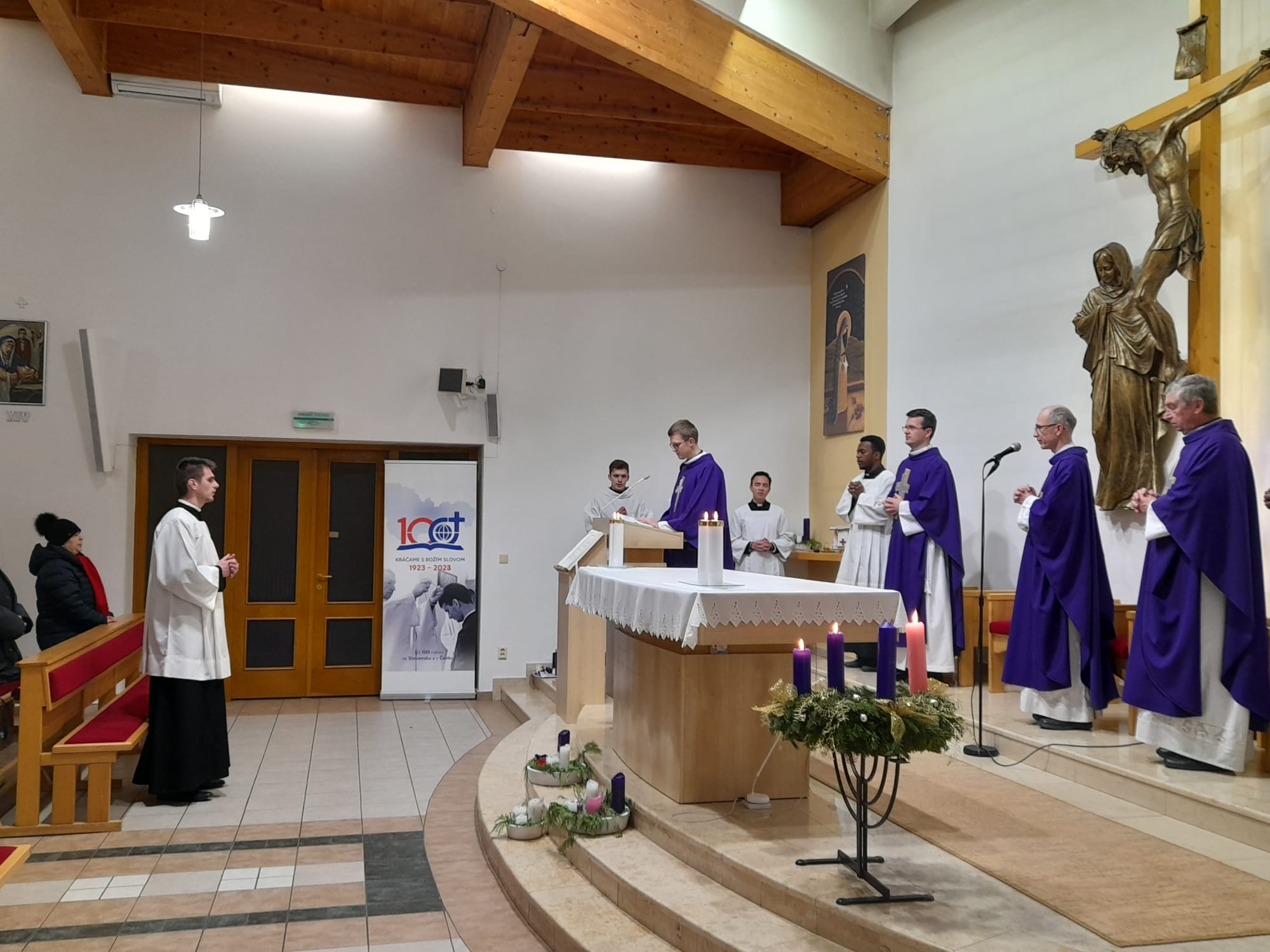 Službu akolytátu prijal Benedikt z rúk P. provinciála Mareka Vaňúša. Bolo to pri včerajší (19.12.) sv. omši a koncelebrovali aj mnohí iný spolubratia. Po krátke a povzbudzujúce homílii nasledoval samotný obrad a potom sv. omša pokračovala ako zvyčajne. S tím rozdielom, že po sv. prijímaní purifikoval liturgické nádoby už Benedikt.