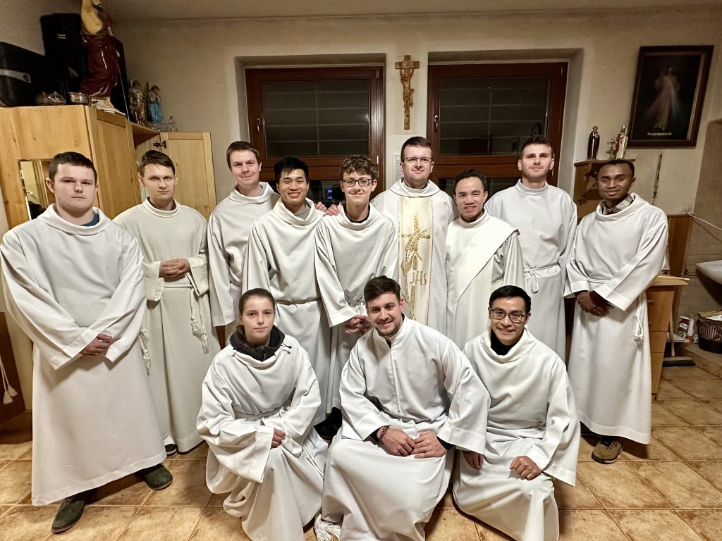 Na prelome januára a februára sme po skúškovom období odložili knihy, skriptá a vybrali sa načerpať nové sily do srdca Malej Fatry – do Terchovej. Týždeň od 31. januára do 6. februára 2026 sa pre nás stal časom oddychu, bratstva, modlitby aj vďačnosti. Počas týždňa sme lyžovali vo Vrátnej doline. Nešlo o žiadne výkony 😄, skôr o radosť z pohybu a spoločného času. Jedným z vrcholov nášho pobytu bol výstup na Chleb. Zasnežený terén, úplne bezvetrie a mrazivé počasie preverili našu kondíciu aj odhodlanie. Keď sme stáli na vrchole a dívali sa na nekonečné biele horizonty, uvedomili sme si, že podobne je to aj v duchovnom živote. Výstup býva náročný, no výhľad stojí za to. Popri túrach sme si našli čas aj na oddych a kúpanie, ako aj na pokojné prechádzky zimnou prírodou. Stredobodom každého dňa bola svätá omša. Ďakovali sme za dar spoločenstva, za krásu prírody i za všetkých dobrodincov. Osobitná vďaka patrí rodinám, ktoré nás počas týchto dní prijali do svojich domovov. Ich pohostinnosť, srdečnosť a otvorenosť boli pre nás veľkým povzbudením. Ďakujeme za každé jedlo, rozhovor i úsmev. Na všetkých pamätáme v modlitbách a prosíme Pána, aby ich odmenil a požehnával ich rodiny. Z Terchovej sme sa vrátili posilnení fyzicky aj duchovne. Tento týždeň bol pre nás darom, ktorý nám pomohol vstúpiť do ďalšieho obdobia štúdia s novou energiou a vďačným srdcom.