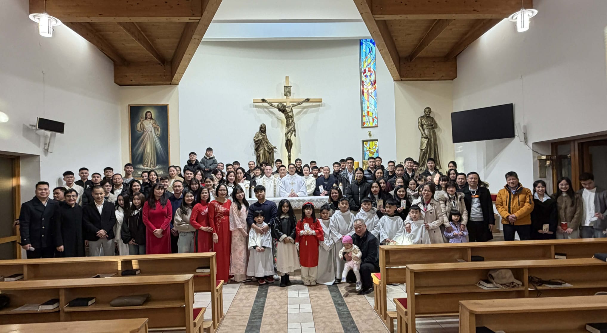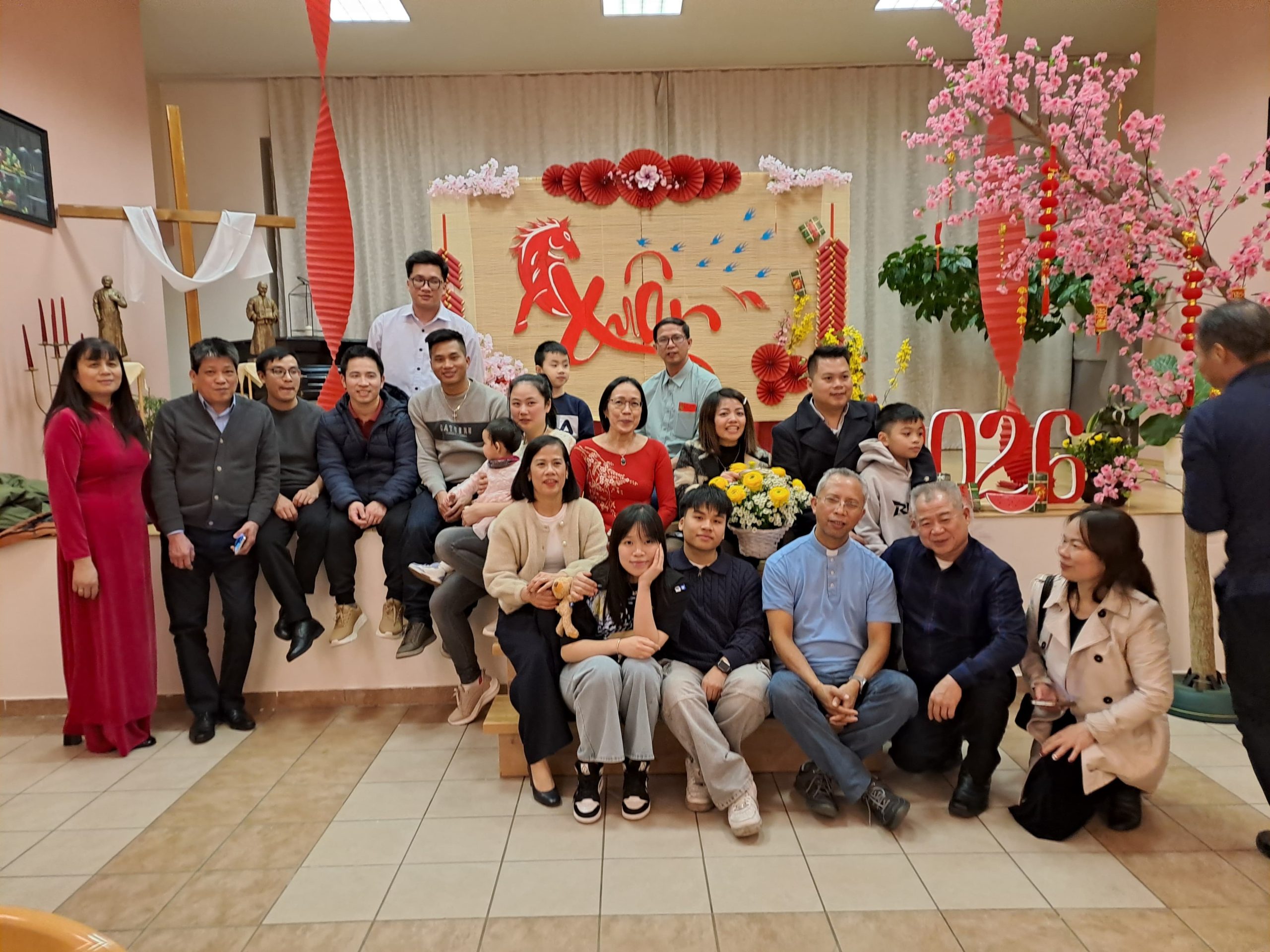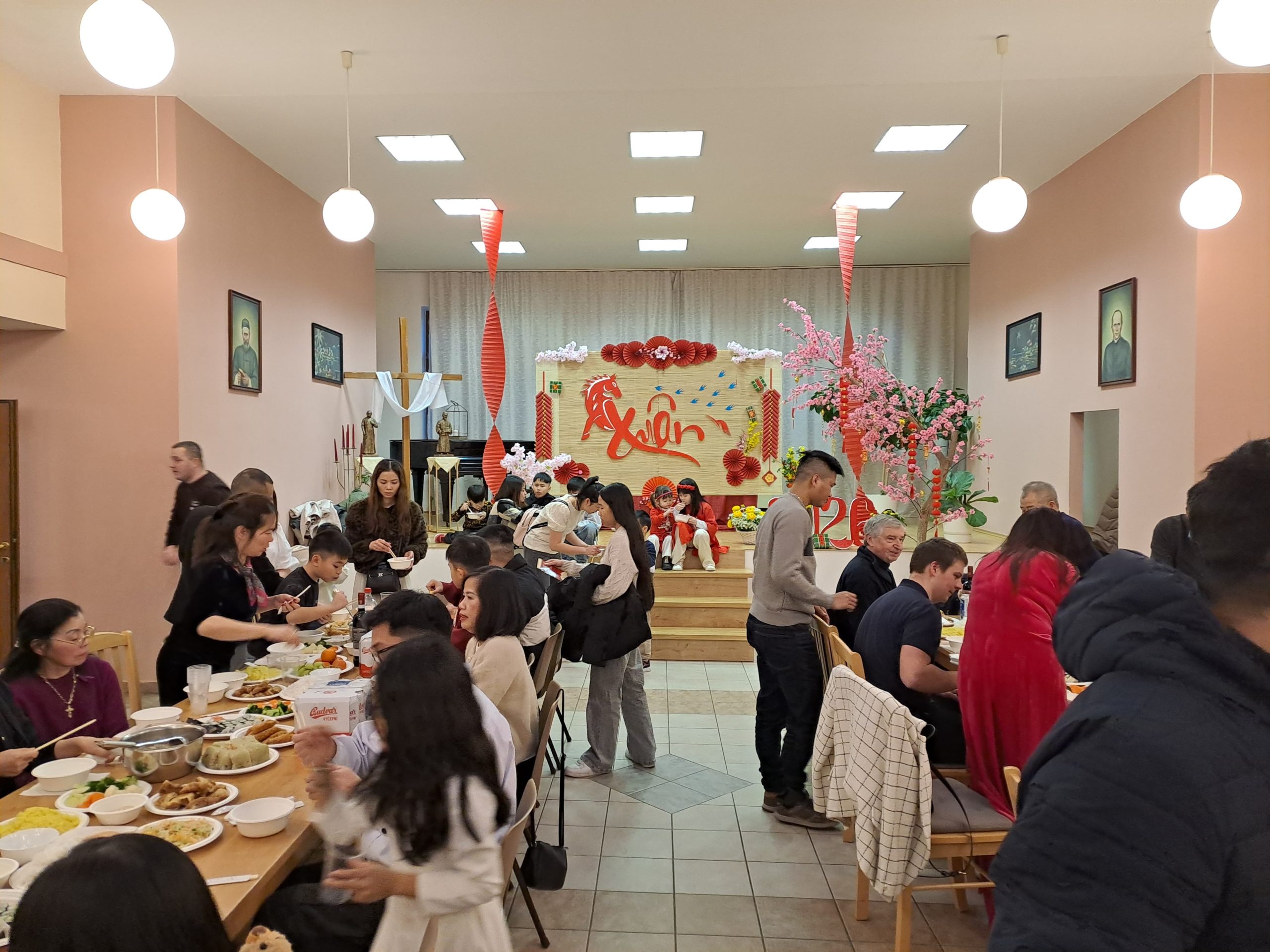 V nedeľu 15. februára 2026 sme v v Misijnom dome Arnolda Janssena v Bratislave oslavovali VIETNAMSKÝ NOVÝ ROK – Tết Nguyên Đán (Tết). Do nášho domu zavítala komunita veriacich z Vietnamu, aby vstúpila do nového lunárneho roka v duchu viery, tradície a vzájomného spoločenstva. Osobitný rozmer mala slávnosť aj preto, že súčasťou našej komunity je diakon Peťo, páter František z farnosti z Mostu pri Bratislave a dvaja naši OTP seminaristi, ktorí pochádzajú z Vietnamu. Tết je najvýznamnejším sviatkom vietnamského kultúrneho i duchovného života. Začína sa prvým dňom prvého mesiaca lunárneho kalendára, spravidla na prelome januára a februára a symbolizuje príchod jari i nový začiatok. V samotnom názve sviatku je obsiahnutá myšlienka „prvého rána, prvého dňa“ momentu, ktorý otvára nový čas, nové príležitosti a obnovu medziľudských vzťahov. Pre Vietnamcov je tento sviatok obdobím návratu k rodine, zmierenia a nádeje. Súčasťou slávenia bola aj svätá omša, ktorú slávil páter František, SVD. Po slávení sv. omše nasledovalo spoločné pohostenie. Nechýbali tradičné vietnamské rolky s čerstvými bylinkami a zeleninou, sushi, ani typický ryžový koláč (bánh chưng), ktorý je neoddeliteľnou súčasťou sviatku Tết. Na záver chceme poďakovať celej vietnamskej komunite za ich prítomnosť, svedectvo viery a ochotu podeliť sa s nami o svoje tradície. Chúc mừng năm mới! (Šťastný nový rok!).